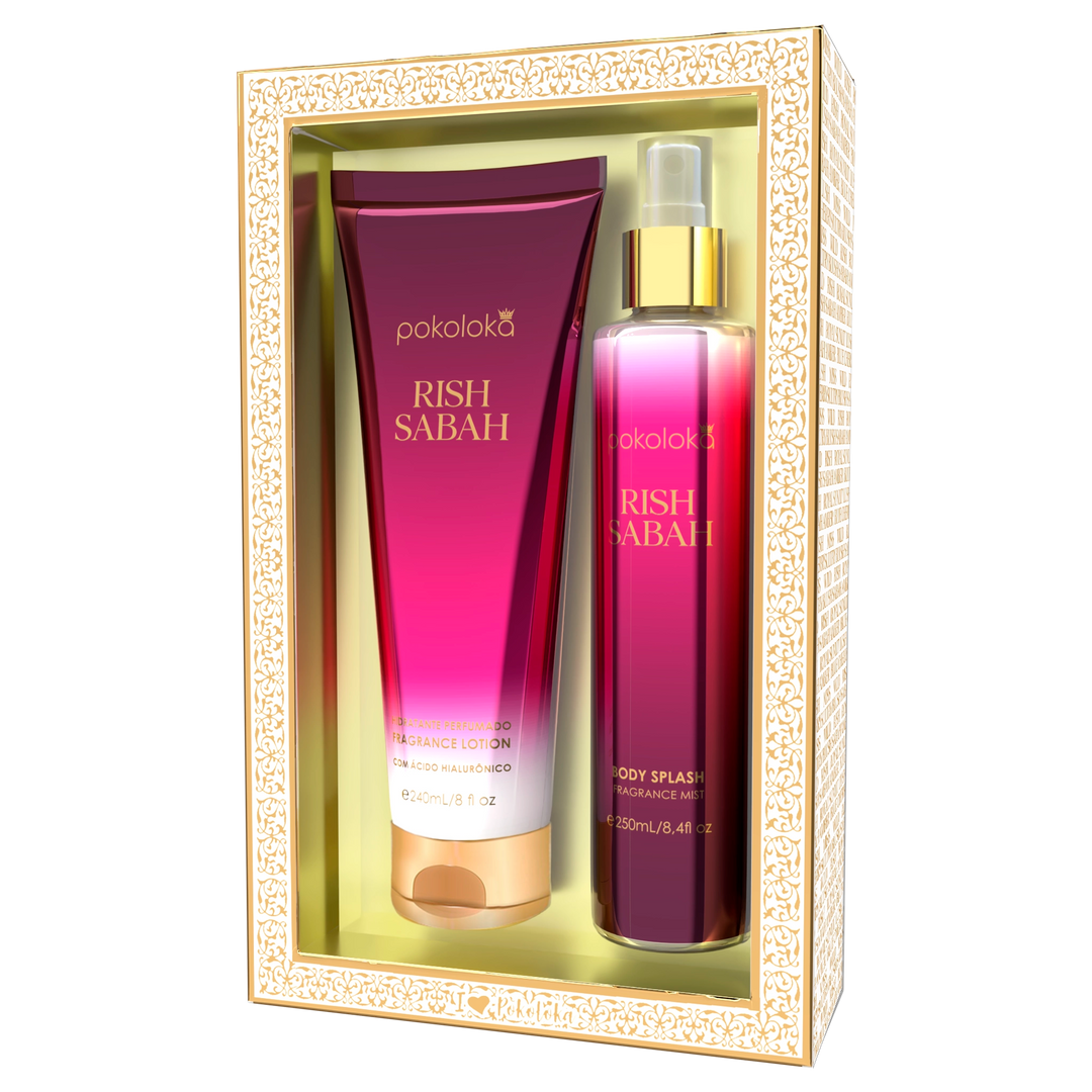 Composto pelo Hidratante Perfumado Rish Sabah (240ml) e pelo Body Splash Rish Sabah (250ml), esse kit transforma sua rotina de cuidados em um ritual de beleza luxuoso, garantindo pele macia, hidratada e com um perfume marcante. ✨